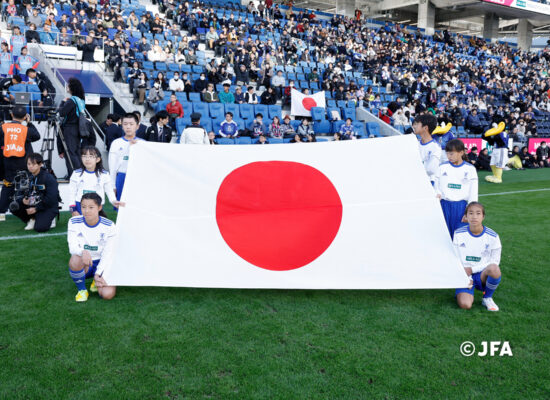 | プログラム内容 | ナショナルフラッグベアラーは、試合前、ピッチに入場していく国旗を運ぶプログラムです。 ※日本の国旗を持っての入場となります。 |