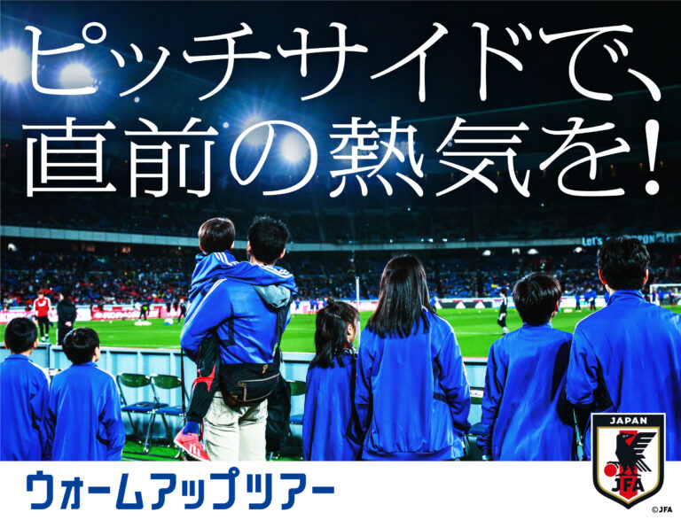 | プログラム内容 | 参加者は試合前の日本代表選手のウォーミングアップを会場ピッチ内エリアより見学。 ピッチの臨場感と、座席より近い位置から選手を見ることができるプログラムとなっております。 |